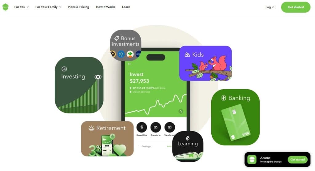 Acorns tackles the problem of “I don’t have enough money to start.” It automates investing by rounding up everyday purchases to the nearest dollar and investing the spare change.
